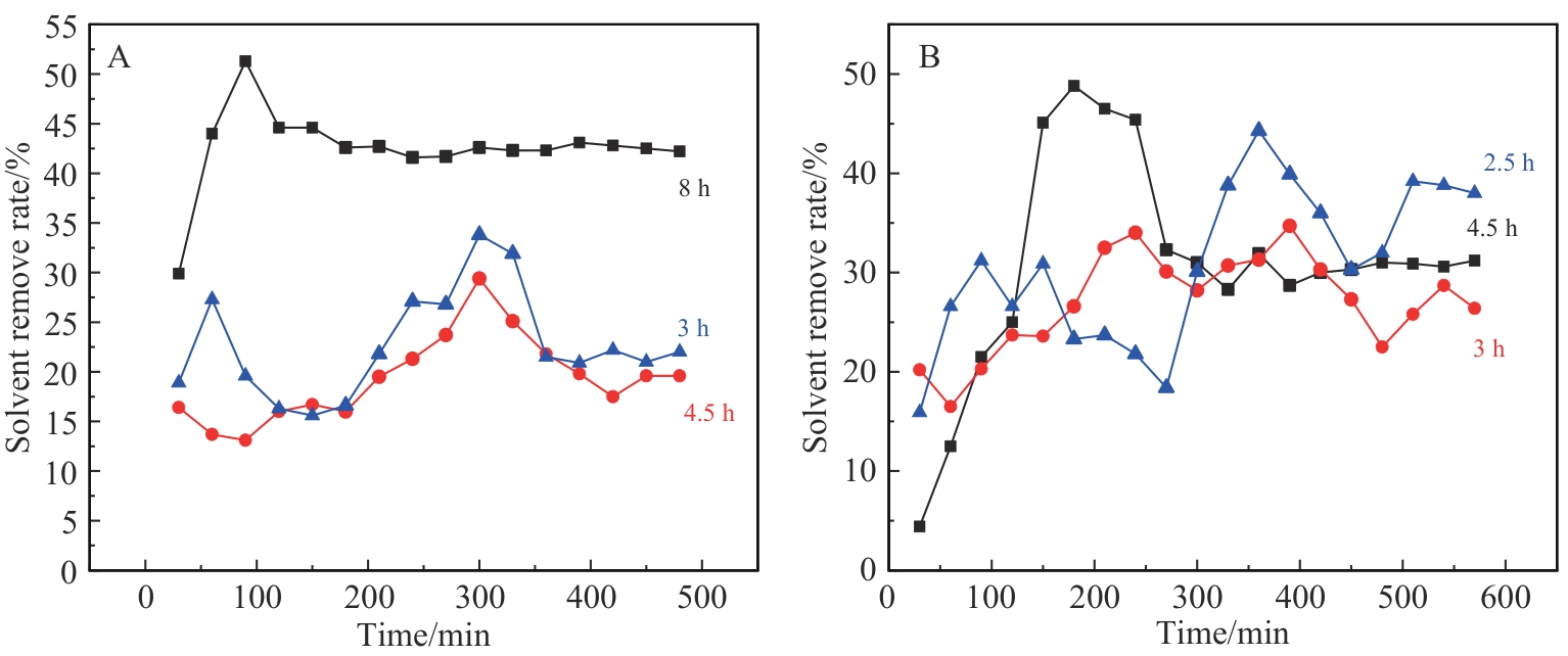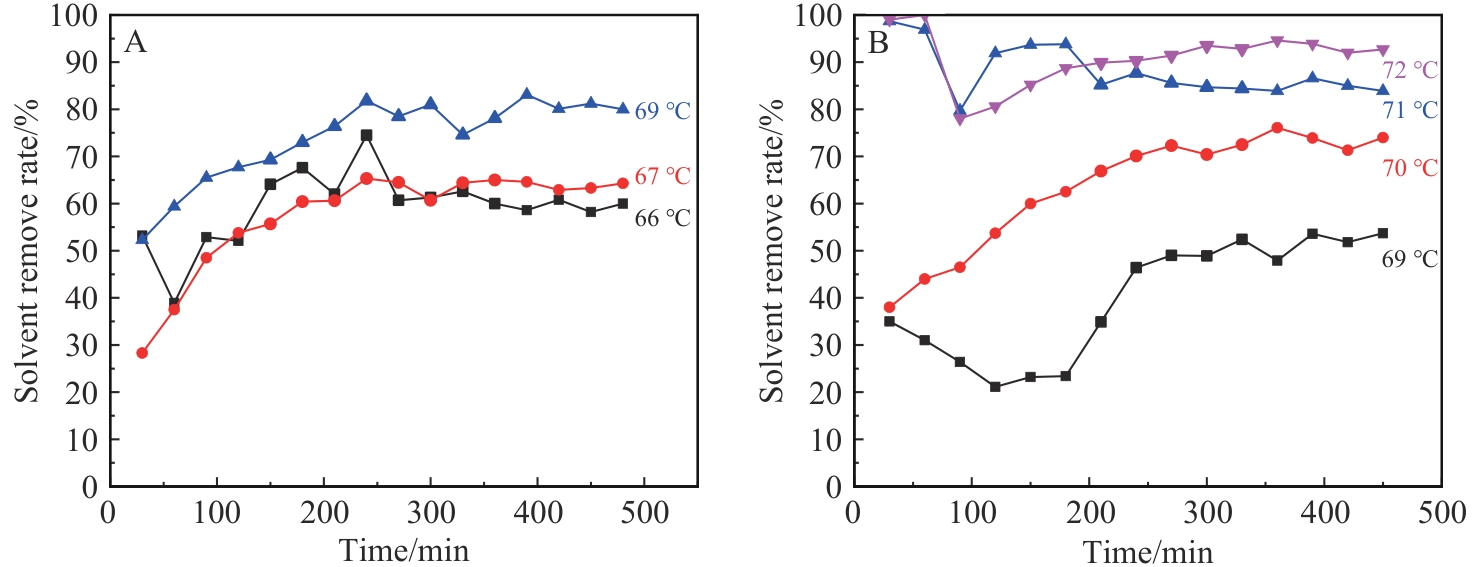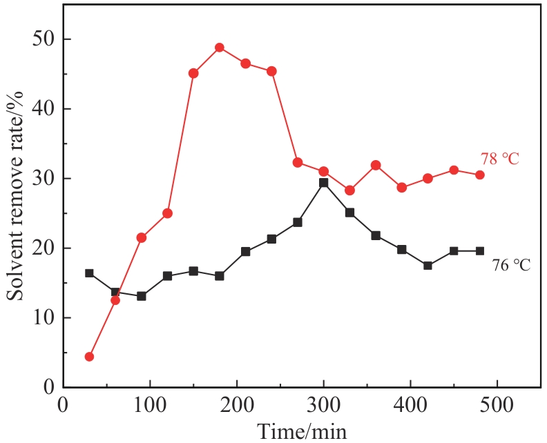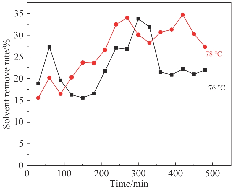 | Distillation temperature/℃ | Distillation duration/h | Solvent removal rate/% | Gel loss/% | Phenomenon |