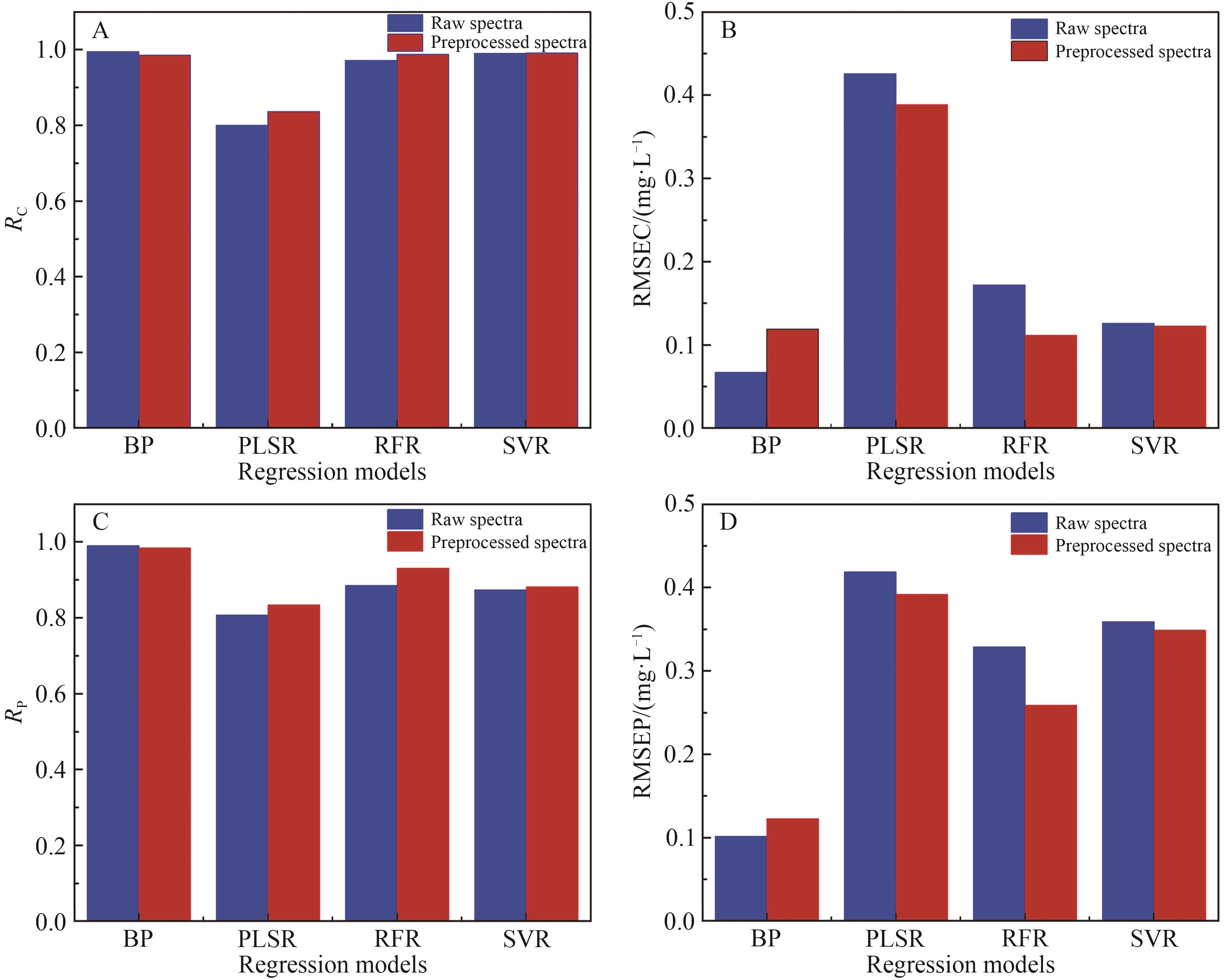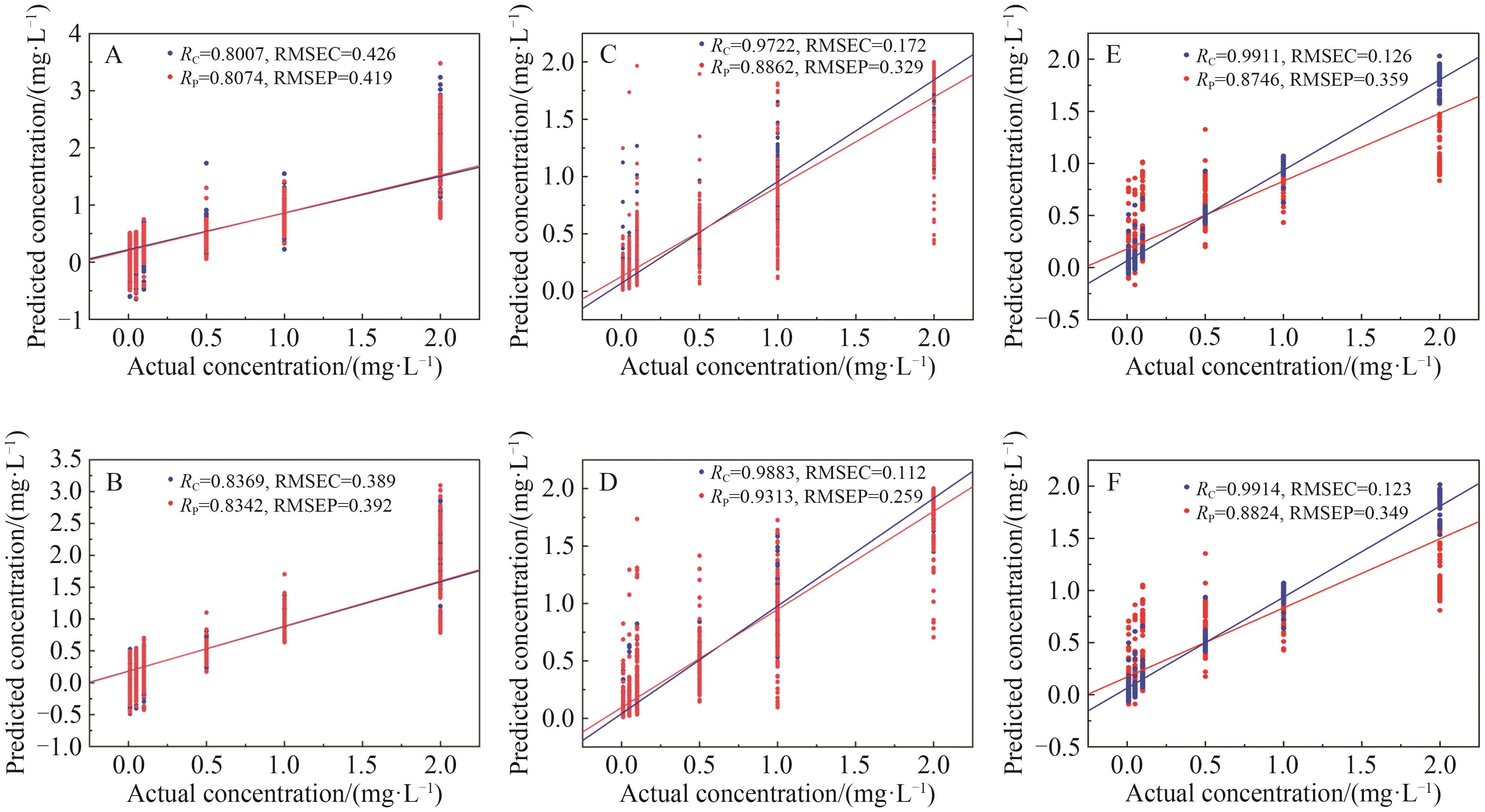 | RC | RMSEC/(mg·L-1) | RP | RMSEP/(mg·L-1) | ||