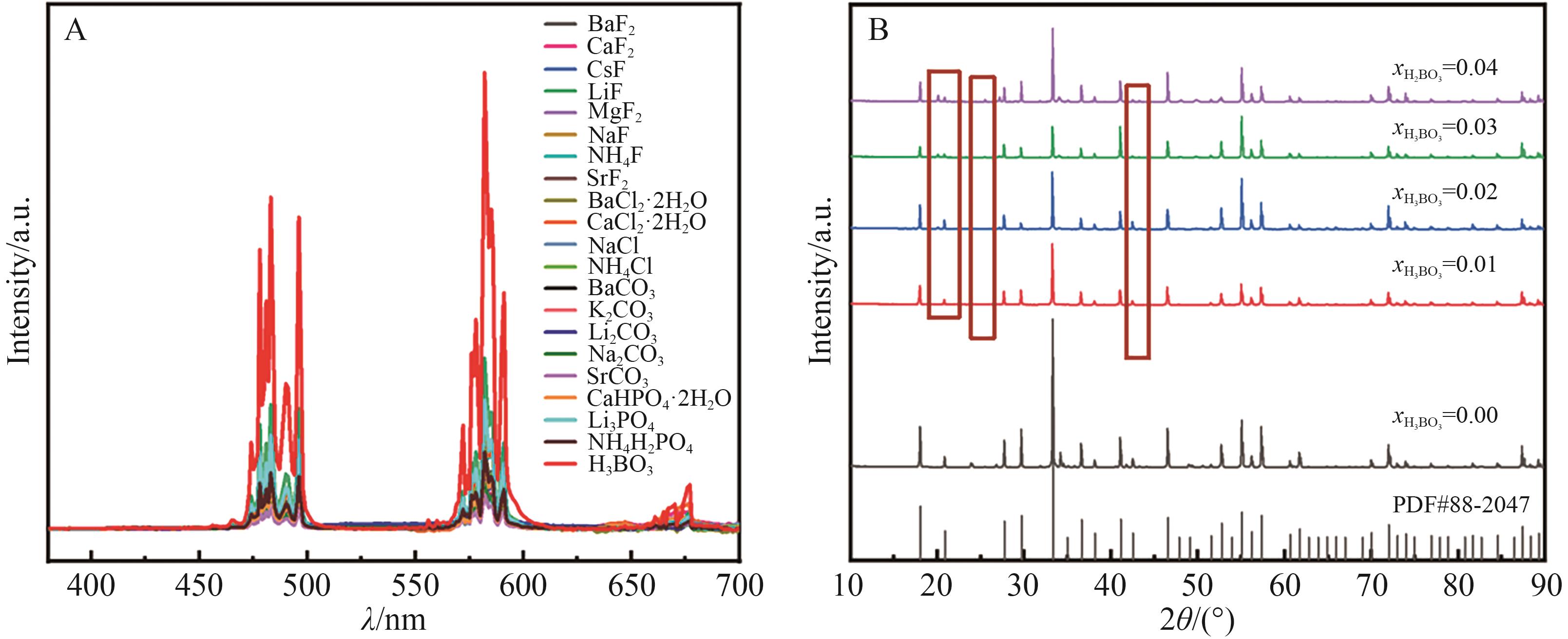 | [23] | DAI W B, HUANG K, LI H, et al. Study on the structure and optical properties of phosphor Ca3La3(BO3)5∶Dy3+ for potential application in temperature sensing[J]. J Lumin, 2020, 227: 117529. |