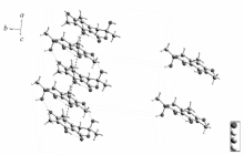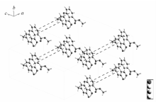 通过platon分析结果表明,分子中3个环几乎在一平面上,平面之间具有强烈的pi-pi堆积相互作用( α=3.58°, β=22°, γ=22°,平面之间的垂直距离为0.329nm);同时存在一个分子内氢键(9-羰基氧原子与8-羟基氢原子,H—O键长为0.189 nm,O—H—O键长为0.263 nm)。 晶胞堆积图如图3所示。