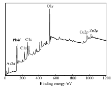 采用XPS对白烟灰样品进行元素组成测定,XPS全谱图如图2所示,样品中出现了明显的As3 d、Pb4 f、C1 s、O1 s、Cu2 p和Zn2 p信号,表明该样品含有As、Pb、C、O、Cu和Zn等元素,Co、Ni、Cr等元素含量较低,在全谱图中未检测出,与ICP化学成分分析结果大致吻合。