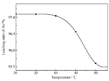 基于上述分析,实验考察了浸出温度、液固质量比 m(液)/ m(固)、浸出时间、H2O2用量、H2SO4浓度等因素对砷浸出率的影响。