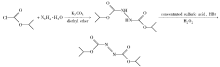 氯甲酸异丙酯与水合肼在-5~0 ℃制得肼-1,2-二甲酸二异丙酯,然后在-5~5 ℃,用双氧水将其氧化,制备偶氮二甲酸二异丙酯。 相对于以前所报道的方法的优点为:反应原料易得,反应操作简单,改进了使用氯气、浓硝酸氧化的方法,降低了三废排放,萃取溶剂可循环使用,两步法合成DIAD的收率可达90.7%,具有工业化生产潜力,其IR、1H NMR等表征结果和文献相符。