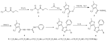 以三氟乙酰乙酸乙酯、磺酰氯、水合肼、异硫氰酸苯酯、碘代芳烃、氯乙酸等为原料,经过氯代反应、环化、酯与肼的交换和Ullmann反应合成了一系列新型含噻唑环、二芳基硫醚或芳硫乙酸的1,2,4-三氮唑类化合物6a~6g。 初步的生测结果表明,化合物5和6具有一定的抑菌活性,其中化合物6b、6d和6g具有可媲美噻呋酰胺对纹枯病菌的抑菌活性,抑制率分别为91%、92%和93%。 进一步的衍生合成及生物活性研究正在进行中。