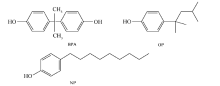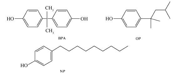 多壁碳纳米管(MWNTs,直径为20~50 nm,纯度>95%)购自深圳比尔科技公司;壬基酚(NP),辛基苯酚(OP),双酚A(BPA),其化学结构如图1所示,乙二醇二甲基丙烯酸酯(EGDMA)和甲基丙烯酸(MAA)购于Sigma公司。 偶氮二异丁腈(AIBN)、乙腈(ACN)、硝酸、乙酸、乙二醇(EG)、醋酸钠(NaAc)、聚乙二醇(PEG,FW=2000)、苯胺、苯酚、邻苯二酚、甲醇和乙醇购自长沙化学试剂公司。 除特殊说明外,所用试剂均为分析纯;实验用水为二次蒸馏水。