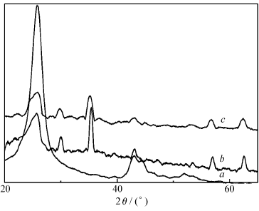 | 图5 MWNTs( a)、MWNTs@Fe3O4( b)和MWNTs@Fe3O4-MIPs( c)的XRD谱图Fig.5 XRD spectra of MWNTs( a), MWNTs@Fe3O4( b) and MWNTs@Fe3O4-MIPs( c) |
