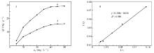 采用Langmuir等温吸附模型对MWNTs@Fe3O4-MIPs的吸附进一步拟合,结果如图7 B所示。 Langmuir等温吸附方程如式(2)[21]所示: