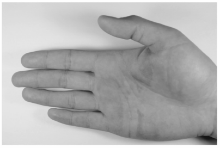 时间间隔是指在接触镀锌工具后到喷洒显色剂前所经历的一段时间。在这段时间内,志愿者可以进行除洗手以及接触其它金属客体外任何日常活动。图5为不同时间间隔的显现效果图。 从图5可以看出,随着时间间隔的增大,显现强度逐渐降低。 7 h后镀锌工具的外形仍可见,但具体的细节特征已非常微弱,很难辨认。 虽然以上变化规律与铁质工具遗留印迹相同,但是由于5-Br-PADAP显现镀锌工具遗留印迹的颜色为品红色,在减弱后与皮肤表面颜色相近,故其最大显出时限应小于TPTZ试剂显现铁质客体遗留印迹的最大显出时限[5]。