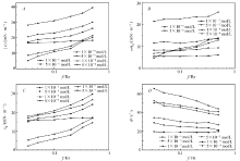 体系界面粘弹性的获得是先测得体系吸附过程的动态界面张力,直到界面张力达到完全平衡为止。 待体系完全达到平衡后,通过马达做周期性运动得到界面扩张粘弹性数据,工作频率为0.033~0.50 Hz,扩张形变(Δ A/A)为10%。 实验过程中用循环水浴控制体系温度,所有实验均在(25.0±0.1) ℃下进行。