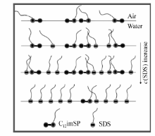 | 图5 不同浓度的SDS对C12imSP/NaCl(0.1mol/L)体系表面上分子聚集行为影响示意图Fig.5 Schematic of effect of SDS on the aggregation behavior of C12imSP/NaCl(0.1 mol/L) system at surface |
