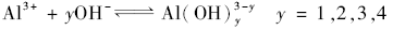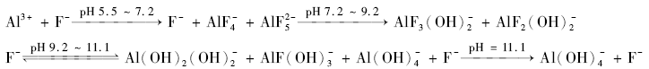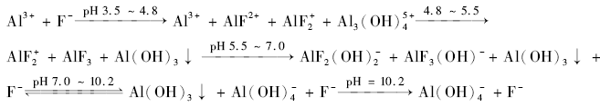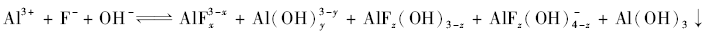 如引言所述,F--Al3+-OH-体系可能生成氟铝配合物、氟铝羟基配合物、羟基铝配合物和氢氧化铝沉淀,如式(6)所示。