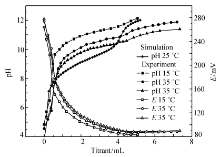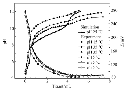 软件模拟F--Al3+体系的滴定曲线,并和实验滴定曲线比较,如图1所示。
