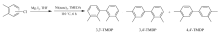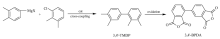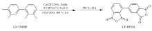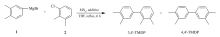 Scheme 2所示的是以混合氯代邻二甲苯作为原料和反应溶剂,利用交叉偶联反应制备四甲基联苯的方法。 本研究通过催化剂用量、反应温度等反应条件的优化,有效控制了反应过程中的热效应,同时提高了反应产率(产率可高达84%)。 而且可将反应放大至千克级(氯代邻二甲苯量达到5 kg)。 以邻苯二甲酸二甲酯或混合氯代邻苯二甲酸二甲酯为原料制备3,4'-BPDA[13,14,15]的方法相比,该方法在分离及环保方面具有明显的优势。 但是,由于起始原料为两种氯代邻二甲苯的混合物,得到的是3种四甲基联苯的同分异构体( n(3,3'-TMDP): n(3,4'-TMDP): n(4,4'-TMDP)=1:2.7:2),因此3,4'-TMDP的理论产率仅为40%,分离过程复杂,尽管能够同时制备3种不同的异构体的混合物,但是作为制备3,4'-BPDA的关键步骤使用受到限制[16]。