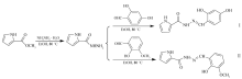 本文以2-吡咯甲酰肼与2,4-二羟基苯甲醛和2-羟基-3-甲氧基苯甲醛经缩合反应合成2,4-二羟基苯甲醛-2-吡咯甲酰腙C12H11N3O3(Ⅰ)和2-羟基-3-甲氧基苯甲醛-2-吡咯甲酰腙C13H15N3O4(Ⅱ),通过溶剂挥发法,在乙醇溶液中培养出单晶,合成路线见Scheme 1。 通过红外光谱、元素分析、1H NMR、X射线单晶衍射对晶体Ⅰ和Ⅱ进行结构表征,采用热重技术分析它们的热稳定性,利用粘度实验和微量热实验探究两种化合物与小牛胸腺DNA(CT-DNA)的相互作用。