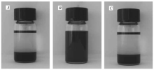 2.1.1 温控两相特性 考察不同温度下PIL与常用溶剂的互溶性,发现PIL与甲苯存在明显的温控两相特性:室温条件,PIL与甲苯不溶,界面明显,即使剧烈震荡,静置后亦迅速分层;升高温度至60 ℃,溶液震荡后形成稳定均一体系;降温,溶液又立刻分为两层。 溶解性能测试实物图如图1所示。