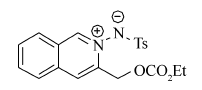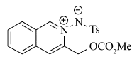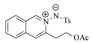 N, N-Isoquinoline dipole derivatives were synthesized via intramolecular cyclization of o-alkynylbenzaldehyde hydrazones in the presence of silver acetate(AgOAc) in dichloromethane(DCM) at room temperature. The chemical structures of these obtained products were characterized by mass spectrometry and nuclear magnetic resonance spectroscopy(NMR). In addition, the effect of catalysts and their loadings, raw material ratios, solvents and temperatures on the yields was investigated. The target compound (3-(((methoxycarbonyl)oxy)methyl)isoquinolin-2-iu- m-2-yl)(tosyl)-amide is obtained in 60% yield and the substrate adaptability can be up to 85% under optimum conditions. This method has advantages of easy operation, mild reaction condition and functional group tolerance. Through the exploration of experimental conditions and substrate applicability, this paper solves the disadvantages and shortcomings of the method of synthesizing isoquinoline dipole compounds in the past, which provides a new experimental method for the preparation of compounds containing such skeletons.