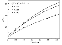 | 图7 料液相中稀土离子浓度对Yb3+萃取率的影响Fig.7 Effect of rare earth ion concentrations in the feed phase on the extraction of Yb3+ |