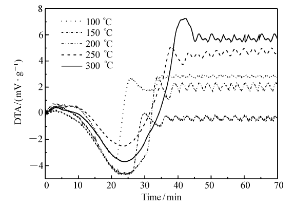 | 图6 Merey原油空气气氛下恒温实验的DTA曲线Fig.6 DTA curves at different isothermal conditions under air for Merey crude oil |