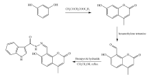 A coumarin type fluorescent probe was synthesized from 1 H-indole-3-carbohydrazide hydrazide and 8-formyl 7-hydroxy-4-methylcoumarin, which was obtained by Pechmann condensation of resorcinol and ethyl acetoacetate followed by formylation employing hexamethylenetetramine. The structure and fluorescence properties of this probe were characterized by nuclear magnetic resonance spectroscopy(NMR), mass spectrometry(MS), fluorescence emission spectrometer and UV-visible absorption spectrum. The probe coordinated with Zn2+ in 1:1 ratio and led to high selectivity for the detection of Zn2+ with a detection limit at 3.6×10-8 mol/L. These demonstrate potential application of the probe for the detection of Zn2+ in biological studies.