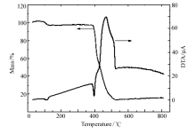如图6所示,为研究配合物1的热稳定性,在N2气氛下30~800 ℃范围内对配合物1进行了热重分析(Thermogravimetric Analyses,TGA)和差热分析(Differential Thermal Analyses,DTA),升温速率为10 ℃/min。 配合物1的TGA曲线显示明显的两步失重,第1步失重在103~129 ℃温度范围内,归属为[Co(3-bptpa)(1,3,5-Hbtc)]·2H2O结晶水分子的失去。失重率理论值为5.79%,实验值为4.90%,实验值偏低可能是因为所测样品部分风化所致。 第2步失重在384~532 ℃范围内,归属为配体的破坏和MOF骨架的逐步坍塌。 推测550 ℃以上的残渣主要是CoO,失重率理论值为87.94%,实验值为86.45%。 DTA曲线显示配合物1有两个吸热峰(125和398 ℃)和1个放热峰(470 ℃),2个吸热峰分别对应结晶水的失去和MOF骨架的破坏,放热峰对应有机配体被氧化和CoO的形成。
